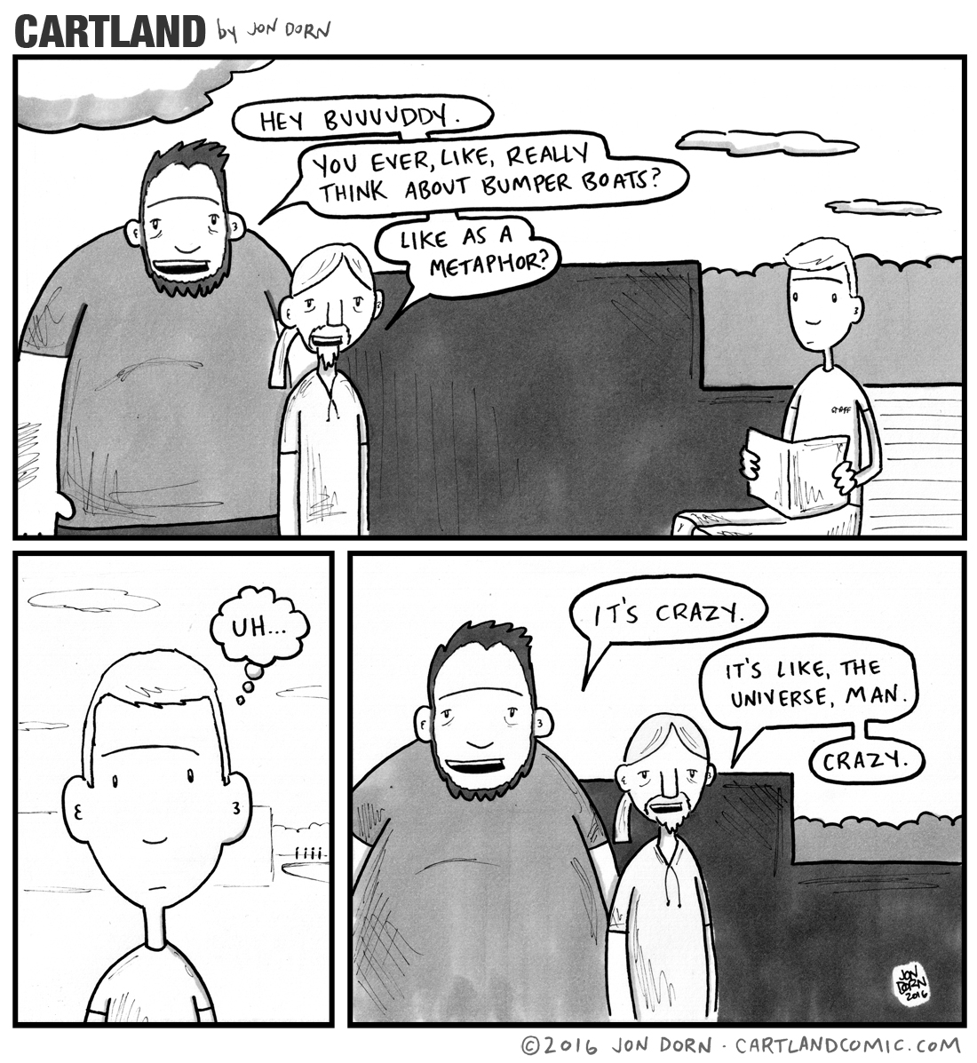 I've been drawing cartoons as long as I can remember, but really got into publishing my work in college as an editorial cartoonist for the school newspaper. I continued this work as a contributing cartoonist for my local newspaper, and by creating the fictional narrative webcomic Cartland as part of my MFA thesis.